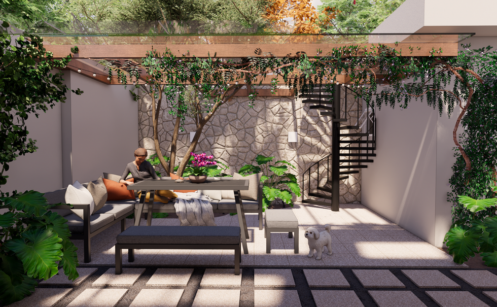 Tipo: Arquitetura e interiores- Entrada, gourmet e suíte master para casa residencial.